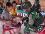 NEWS ARSO – Prajurit TNI dari Satgas Pamtas RI–PNG Yonif Mekanis Raider 413 Kostrad melaksanakan kegiatan bakti sosial berupa pelayanan kesehatan keliling