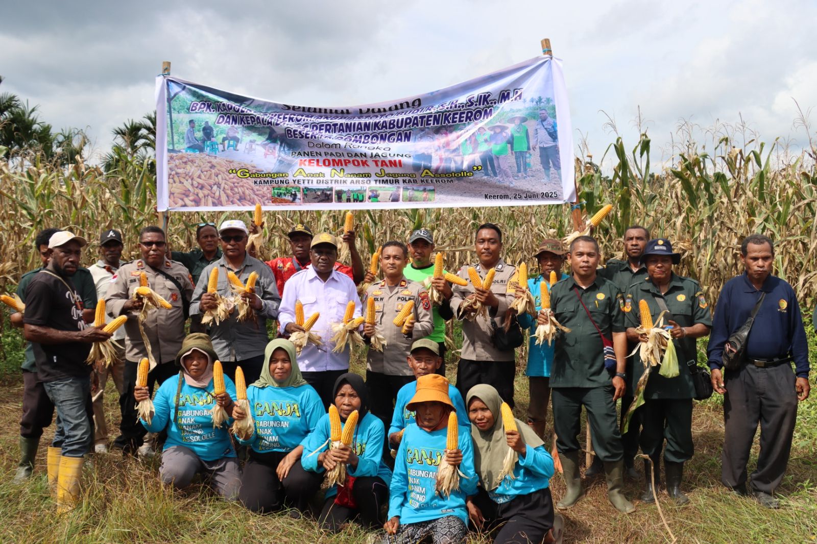 News Arso – Polres Keerom bersama masyarakat menghadiri panen raya jagung yang digelar oleh Kelompok Tani GANJA (Gabungan Petani Jagung Asli) di Distrik Arso. Kegiatan ini menjadi bukti nyata sinergi antara aparat kepolisian, pemerintah, dan masyarakat dalam mendukung ketahanan pangan sekaligus memperkuat perekonomian lokal.